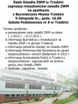Rada Osiedla ZWM w Trzebini zaprasza mieszkańców osiedla ZWM na spotkanie z Burmistrzem Miasta Trzebini 9. Listopada 2012 roku od godziny 16.00 w Szkole Podstawowej nr 8.